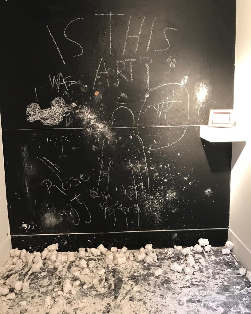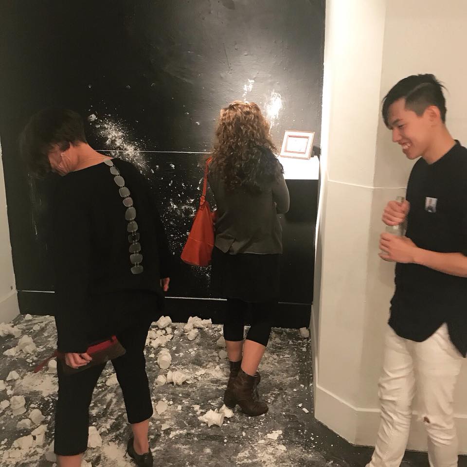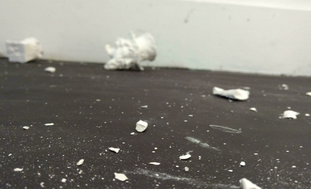 Viewers are asked to throw and destroy plaster sculptures of Uncle Hôm — an absurd amalgamation of national icons Hô Chí Minh and Uncle Sam. Meanwhile, the artist who lives in the U.S explains to participants and viewers his relationship with his mother who lives in Vietnam.